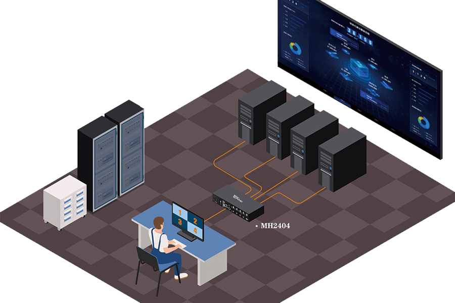 MH2414 supports 4K HD video output, with keyboard/mouse emulation, USB independent switching, audio switching and other functions. It allows users to switch different servers quickly and seamlessly and work smoothly with the mouse that can be moved to another screen easily and freely.