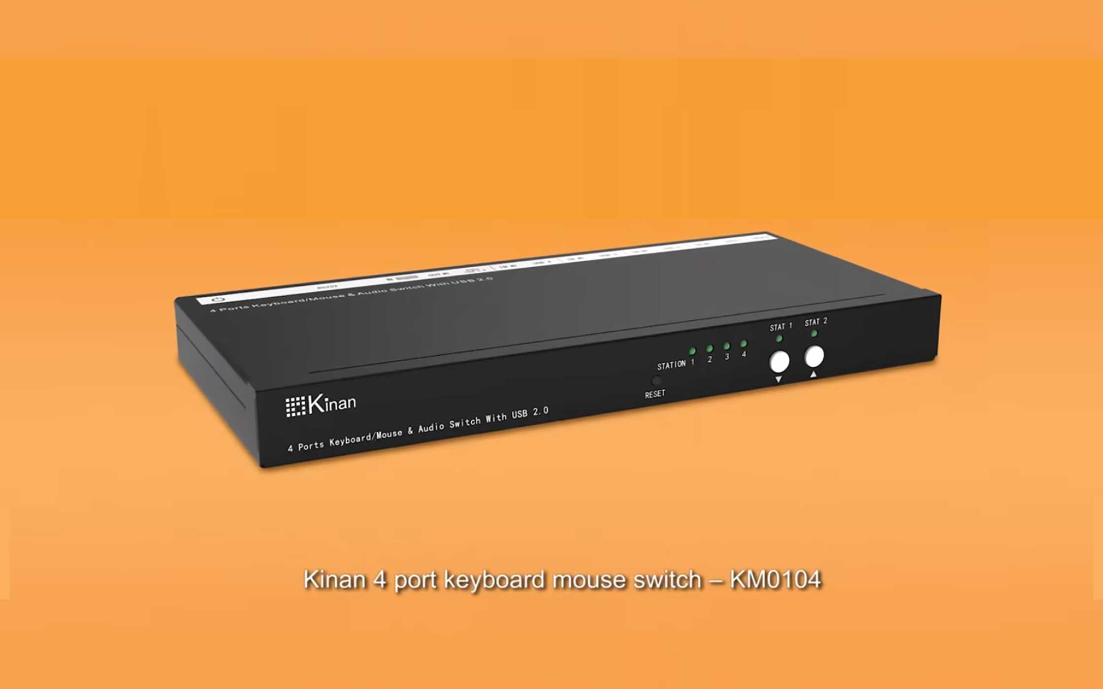 The KM0104 is a 4-port keyboard-mouse switch that enables users to manage and control up to 4 computers with one set of keyboard and mouse. It supports seamless Keyboard-Mouse Command on 4 computers from a single workstation.
