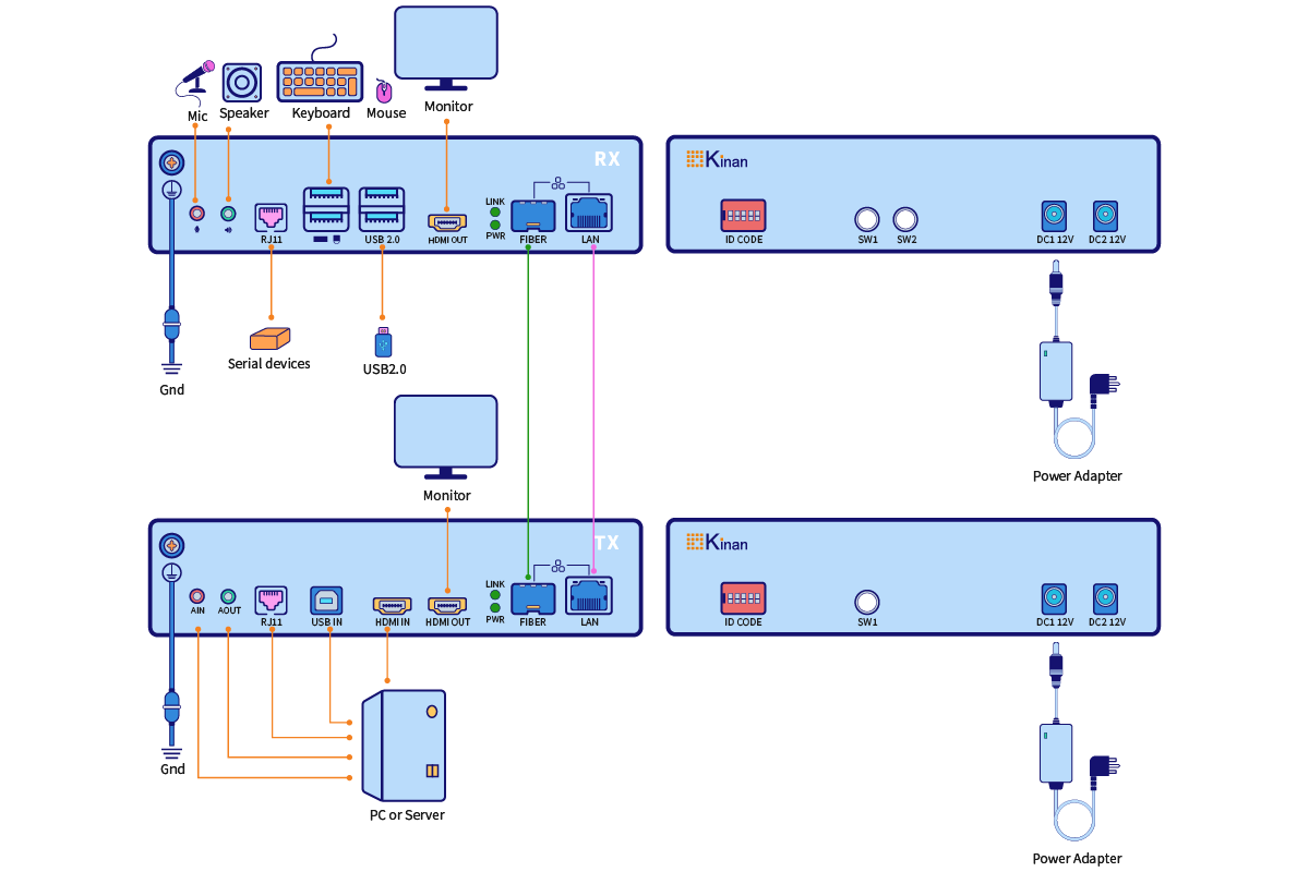Home » KVM Extenders » HDMI® FHD KVM Extender over Fiber/Cat5