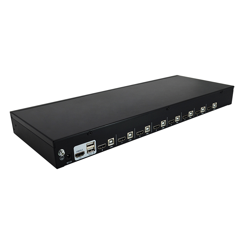 Kinan RHD108 rack mount HDMI KVM switch with 8 ports allows access and control up to 8 computers from a single console (keyboard, mouse, and monitor).