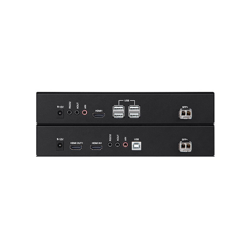 The KFH101S HDMI digital KVM extender delivers FHD HDMI video, USB, RS232, and stereo audio signals up to 300m over fiber optic cable.